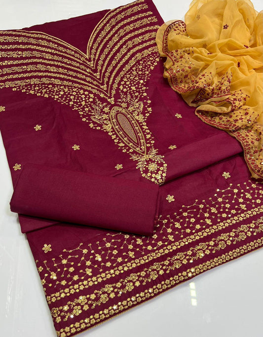 3 Pcs Lawn Suit Chifon Dupatta