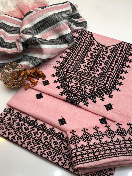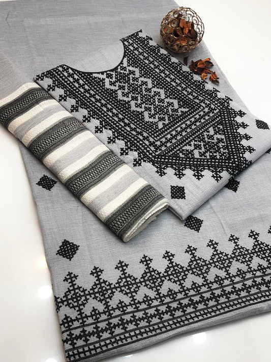 3 Pcs Khaddi Khadar Suit with Jacquard Velvet Shawl